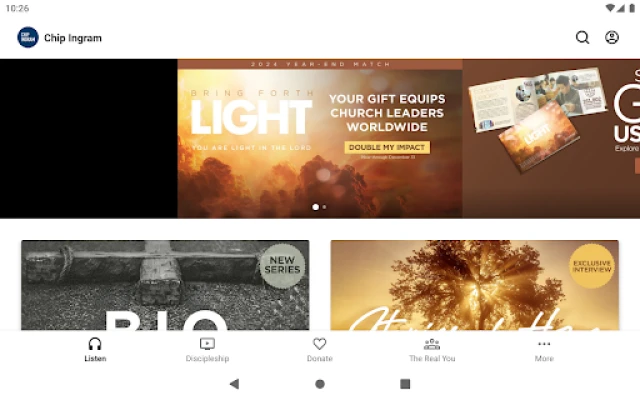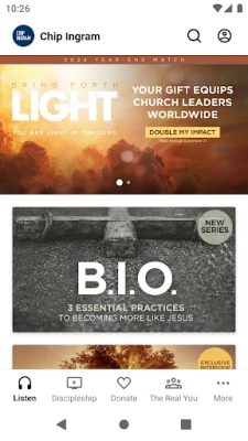 Chip Ingram Appen hjälper dig att fördjupa din relation med Jesus Kristus. Få tillgång till dagliga andakter, radiosändningar, budskapsanteckningar och Chip Ingrams blogg direkt i appen. Chip Ingram Appen erbjuder värdefulla resurser för andlig tillväxt.
