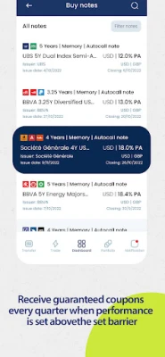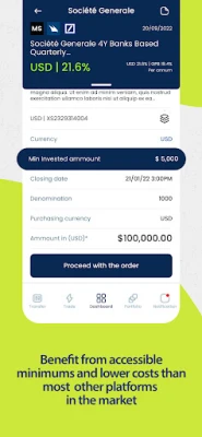 Upptäck en banbrytande portal för din finansiella framtid, direkt i din hand. Denna sofistikerade plattform öppnar dörrarna till en värld av investeringar, där du smidigt kan köpa och sälja strukturerade obligationer, ETF:er och aktier. Dessutom får du tillgång till att placera kapital i fonder. För att säkerställa att du alltid har nya möjligheter, lanseras minst 3-4 nya strukturerade obligationer varje månad, omedelbart tillgängliga för förvärv via din mobil.