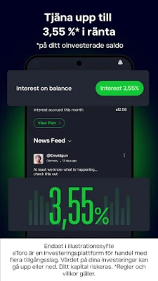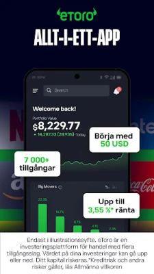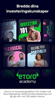 Kliv in i nästa generation av investeringar med eToros innovativa Smart Portfolios, färdiga och intelligent allokerade portföljer som utnyttjar den senaste tekniken för att optimera tillgångsval och samtidigt minimera långsiktig risk. Din trygghet är vår främsta prioritet; eToro åtnjuter förtroende från miljontals användare globalt och regleras av nio finansiella myndigheter, inklusive CySEC, FCA och ASIC. Vi värnar om din integritet och låter dig styra din profils synlighet, alltid med de strängaste standarderna för skydd av personlig information. eToro är en investeringsplattform med flera tillgångar. Värdet på dina investeringar kan fluktuera uppåt eller nedåt. Copy Trading utgör inte investeringsrådgivning. Kryptotillgångar är volatila och potentiellt olämpliga för alla investerare, oreglerade i de flesta EU-länder och Storbritannien, utan EU-regelskydd. Skatt på vinster kan tillkomma. eToro (EU) Ltd. är auktoriserat och reglerat av CySEC (licens 109/10). eToro (UK) Ltd. är auktoriserat och reglerat av UK Financial Conduct Authority (FCA-reg. 583263).