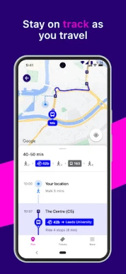 Aldrig mer behöver du oroa dig för att missa bussen. Med First Bus App får du tillgång till exakta busstider och ruttinformation i realtid direkt i din ficka. Kartfunktionen visar dig de närmaste hållplatserna och deras live-uppdateringar, så du vet precis var bussen befinner sig och när den anländer. Spara enkelt dina favorithållplatser, rutter och platser för snabb åtkomst, och återbesök nyligen sökta resor med ett par tryck. Nu kan du planera din ankomst till hållplatsen perfekt och undvika onödig väntetid.