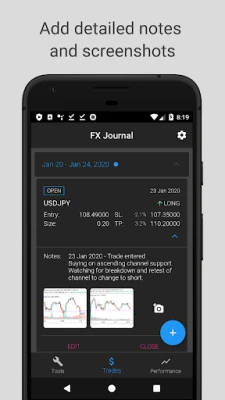 För varje trader är en detaljerad tradingjournal avgörande. Den bör inkludera affärernas ekonomi samt dina tankar och känslor. Denna app hjälper dig att noggrant dokumentera allt, för bättre insikt och beslutsfattande i din trading.
