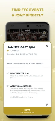 FYCit sätter dig i förarsätet med anpassningsbara inställningar; välj enkelt vilka städer du vill följa för visningar, direkt från din profil. Att delta i evenemang har aldrig varit smidigare, då appen erbjuder direkta länkar till studiornas anmälningssidor. För de verifierade medlemmarna innebär detta enastående fördelar, inklusive tidiga inbjudningar till utvalda visningar och tillgång till andra exklusiva evenemang som berikar din upplevelse av säsongen. Markera dina favoriter bland filmer, serier och platser för att omedelbart få notiser om nya visningar eller nytt extramaterial.