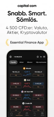 Över 750 000 användare världen över litar redan på Capital.com för att navigera de globala finansmarknaderna. Capital.com, din avancerade plattform för CFD-handel, öppnar dörrarna till en imponerande portfölj av över 4 800 olika CFD-marknader. Oavsett om ditt intresse ligger i aktier från världsledande företag, stora index, dynamiska kryptovalutor*, valutor, guld, ETF:er eller råvaror, erbjuder Capital.com möjligheten att engagera sig i marknaden med flexibiliteten hos derivathandel. Dyk in i de mest efterfrågade tillgångarna som SP 500, Google-aktier, Bitcoin eller ädelmetallen guld – allt tillgängligt genom Capital.com för att ge dig verktygen att handla med derivat på börsen.
