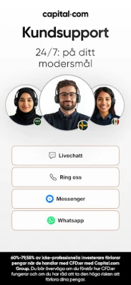Capital.com är en globalt erkänd aktör, belönad för sin användarvänlighet och som "Bästa Handelskonto" av Good Money Guide 2025, samt "Bäst handelsplattform 2024" av Online Money Awards. Capital.com Group är en reglerad mäklare med licenser från auktoriteter som FCA, CySEC, ASIC och SCB UAE, vilket understryker dess åtagande till säkerhet och transparens. För att säkerställa att du aldrig står ensam, erbjuds kundtjänst dygnet runt på engelska och support på ytterligare nio språk. Det är dock avgörande att förstå att CFD-handel innebär en hög risk, särskilt på grund av hävstångseffekten, vilket kan leda till snabba kapitalförluster. Mellan 60%-79,58% av ickeprofessionella investerares konton förlorar pengar vid CFD-handel med Capital.com Group, och du bör noga överväga din förmåga att bära denna risk innan du engagerar dig. Kryptoderivat är ej tillgängliga för ickeprofessionella kunder registrerade hos Capital Com (UK) Ltd.*