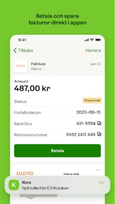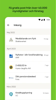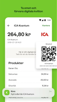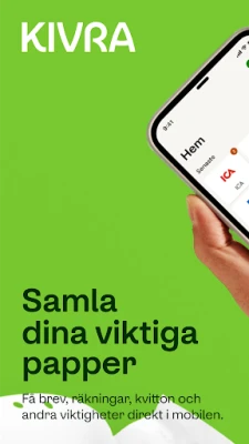 Trött på pappersexperiment och en rörig fysisk brevlåda? Kivra revolutionerar ditt sätt att hantera viktig korrespondens och kvitton, och erbjuder ett smart och miljömedvetet alternativ till den traditionella pappershögen. Med Kivra bidrar du aktivt till en grönare framtid för varje digitalt dokument du tar emot och sparar. Dessutom ger tjänsten dig friheten att själv ladda upp och säkert förvara personliga handlingar som betyder mest för dig, allt skyddat med hjälp av ditt Mobila BankID.