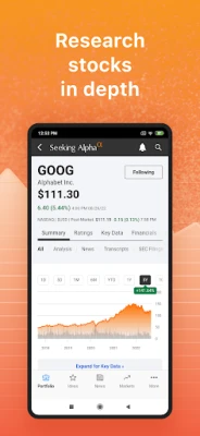 Upptäck en värld av insikter och stärk dina investeringsbeslut med Seeking Alpha. Denna ledande plattform samlar en global gemenskap av över 22 miljoner passionerade investerare, branschexperter och analytiker. Få omedelbar tillgång till kortfattade finansnyheter i realtid, skräddarsydda för snabb läsning, samt djupgående analyser som kan påverka marknaden. Skapa personliga bevakningslistor och portföljer som synkroniseras över dina enheter, och mottag omedelbara varningar om nyheter, forskning och analyser som rör dina valda aktier och index. Seeking Alpha förser dig med kursdata, diagram och en unik möjlighet att dela och diskutera idéer med en mångfacetterad grupp av finansentusiaster.