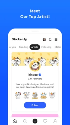 Stig in i en dynamisk värld av digitala uttryck med Sticker.ly, din ultimata källa för animerade stickers och videostatus! Utforska en fascinerande samling av miljarder animerade stickers och tusentals videostatusar, noga utvalda från en myriad av kategorier. Oavsett om du älskar fängslande scener från TV-serier och filmer, ikoniska kändisar, charmiga djur, spännande anime, humoristiska memes, eller vackra illustrationer och tankeväckande citat, kommer du att hitta det perfekta uttrycket. Följ dina favoritkreatörer och artister för att omedelbart få tillgång till de allra senaste och trendigaste stickersen, direkt i dina chattar och statusuppdateringar.