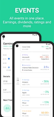 Stock Events sträcker sig längre med en omfattande IPO-kalender som ger dig de senaste uppgifterna om börsintroduktioner, från förväntade noteringar till prestationsanalyser. Anpassa din hemskärm med aktiewidgets för att snabbt övervaka dina favoritaktier och kryptovalutor. Med tillgång till finansiell data för över 100 000 instrument från mer än 50 globala börser, tillsammans med analytikerbetyg, statistik, nyheter och detaljerad ETF-fördelning, har du all information du behöver för välgrundade beslut direkt till hands.