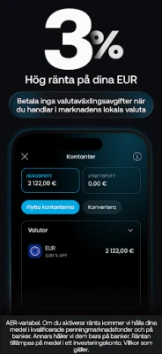 Maximera din potential ytterligare med konkurrenskraftig ränta på dina ej investerade medel, utbetalad dagligen. Hantera enkelt tillgångar i flera valutor med ditt flervalutakonto, som stödjer insättningar och investeringar i 13 olika valutor. Med bråkandelar, intuitiva diagram och AutoInvest kan du bygga en diversifierad portfölj, återinvestera utdelningar och till och med spegla populära portföljer automatiskt. Upplev friheten med Trading 212 Card, som erbjuder revolutionerande låga växelkurser och 1% cashback på dina inköp. För de som söker ytterligare dynamik, erbjuder Trading 212 även över 9 000 CFD:er på bland annat aktier, Forex, guld, olja, index och kryptovalutor, allt med konkurrenskraftiga spreadar och avancerad teknisk analys via TradingView. Dra nytta av Trading 212-communityns insikter och lita på en fantastisk live-kundtjänst som snabbt svarar på dina frågor.